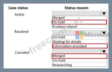 Which status reason is used for each case status? To answer, select the appropriate option in the answer area.