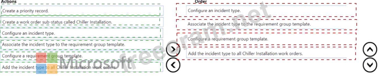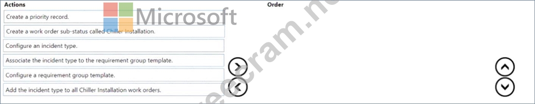 You need to configure the functionality necessary to automatically add all the tasks and resources needed to a work order when the work order type is Chiller Installation. You must follow the established Contoso guidelines for installation requirements, as outlined in the Case Study, and create the most efficient process possible.