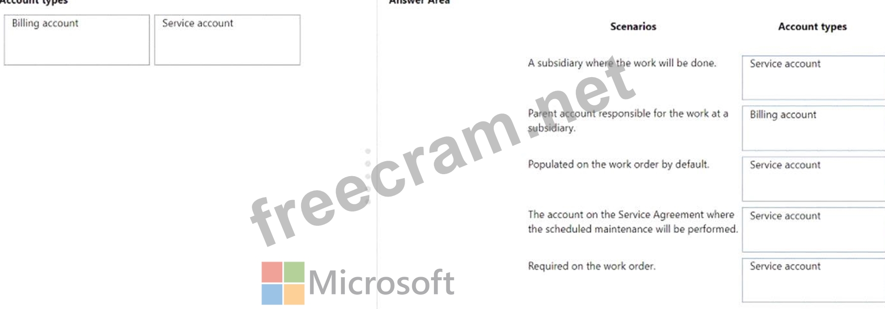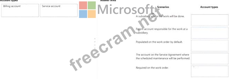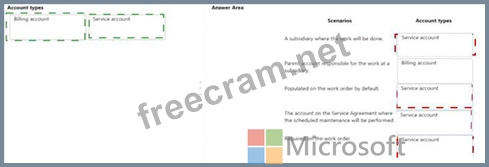 Match the account type to the applicable scenario. To answer, drag the appropriate account type from the column on the left to the applicable scenario on the right. Each account type may be used once, more than once, or not at all.