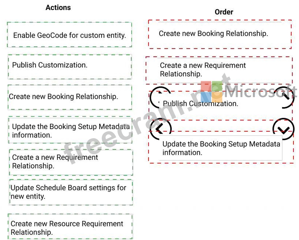 Your organization creates a custom entity. The records for the entity need to be scheduled to resources.