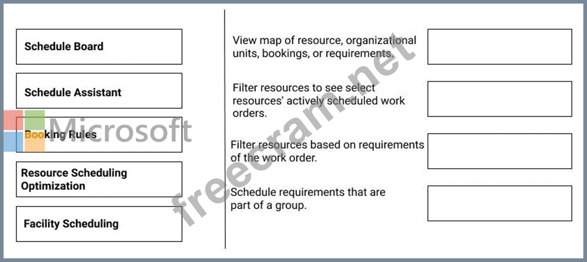 Which scheduling function should be used with each scenario? To answer, drag the appropriate function to the appropriate scenario. Each function may be used once, more than once, or not at all. You may need to drag the split bar between panes or scroll to view the content.
