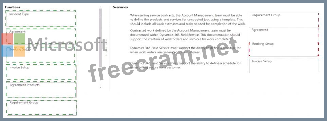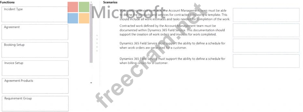 Which functions of the system support the requirement? To answer, move the appropriate function to the appropriate scenario. You may use each function once, more than once, or not at all You may need to move the split bar between panes or scroll to view the content.