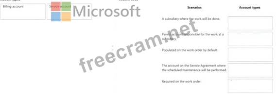 Match the account type to the applicable scenario. To answer, drag the appropriate account type from the column on the left to the applicable scenario on the right. Each account type may be used once, more than once, or not at all.