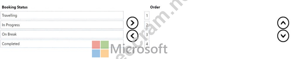 In which order should field technicians update their booking statuses? To answer, move all booking status fields from the list of booking status fields to the answer area, and arrange them in the correct order.