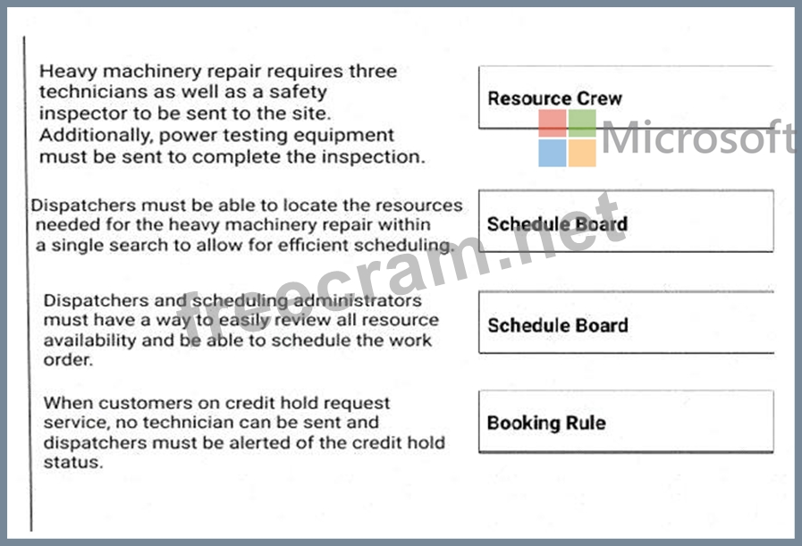 Question 14: You are a Dynamics 365 for Field Service scheduling coordina...