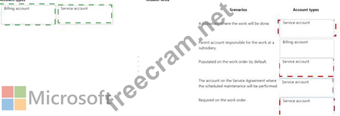 Match the account type to the applicable scenario. To answer, drag the appropriate account type from the column on the left to the applicable scenario on the right. Each account type may be used once, more than once, or not at all.