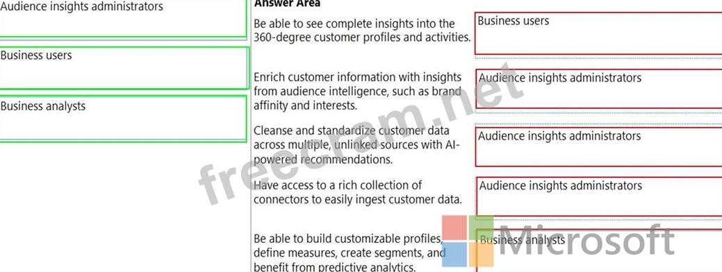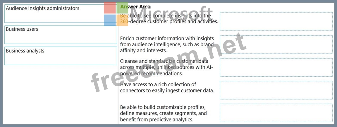 You are a Customer Data Platform Specialist. You are in the process of implementing audience insights as the Customer Data Platform (CDP) solution for your company. Your manager asks you to give a short presentation for new users who will be using audience insights and explain some of the benefits that audience insights will offer them. Which user group will take which benefit from audience insights? To answer, drag the appropriate user group to the correct benefit. Each user group may be used once, more than once, or not at all. You may need to drag the split bar between panes or scroll to view content. NOTE: Each correct selection is worth one point.