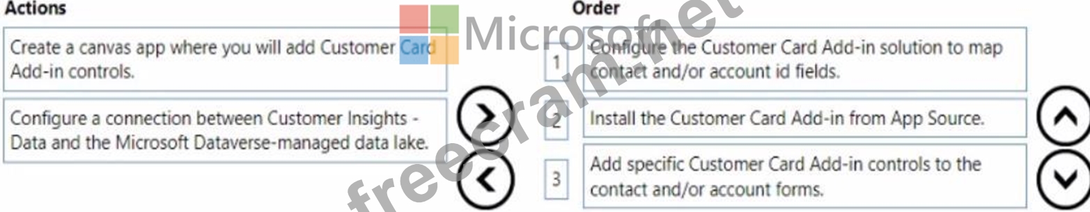 You need to use the Customer Card Add-in to make customer profile data from Dynamics 365 Customer Insights available to contact center users. The organization wants you to follow Microsoft's best practices and recommendations.