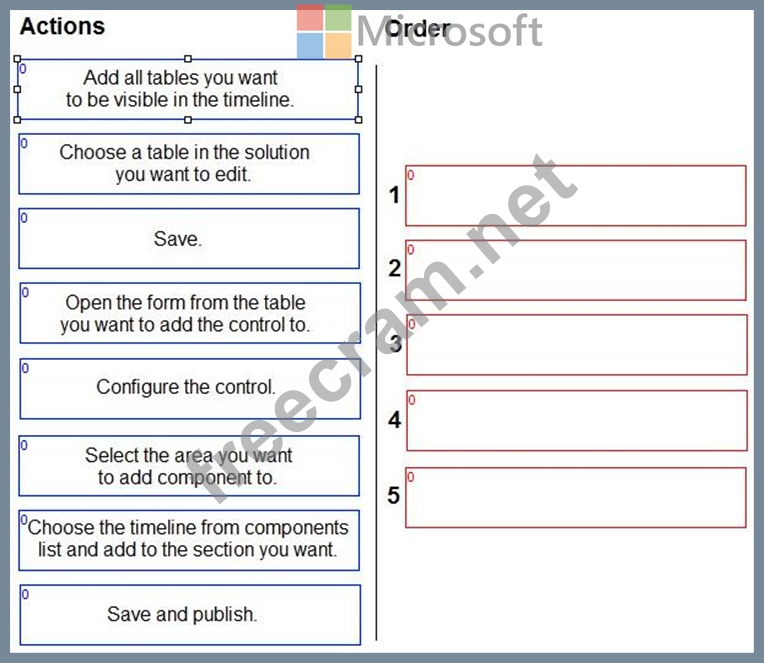 Which five actions should you perform in sequence? To answer, move the five appropriate actions from the list of actions to the answer are a. Arrange the five actions in the correct order.