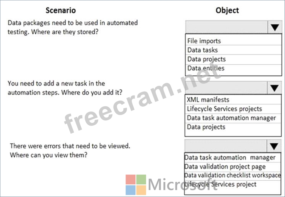 Which objects should you use for each scenario? To answer, select the appropriate options in the answer area.