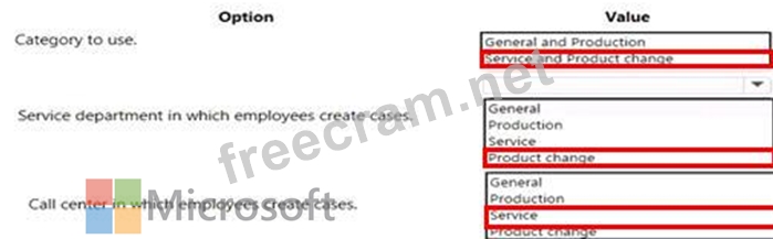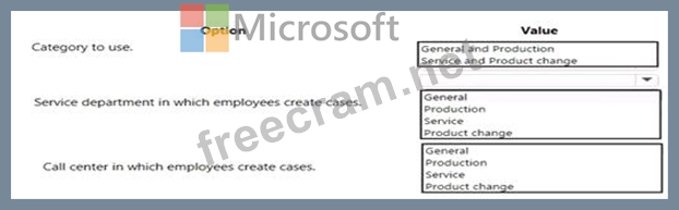 Which Case management settings should you choose for each category or categories? To answer, select the appropriate options in the answer area.