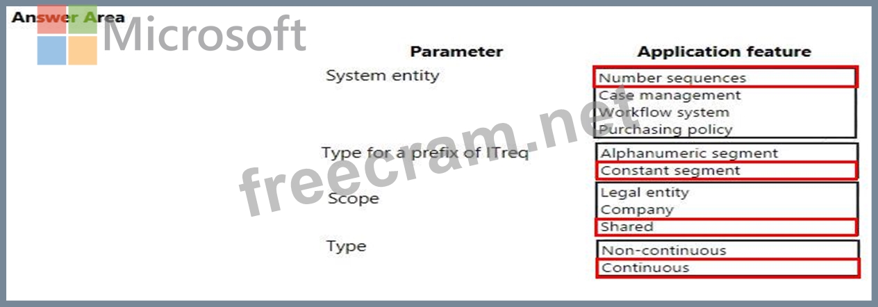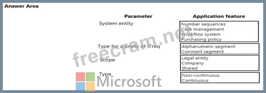 What application features should you use? To answer, select the application feature to match the parameter in the answer area.