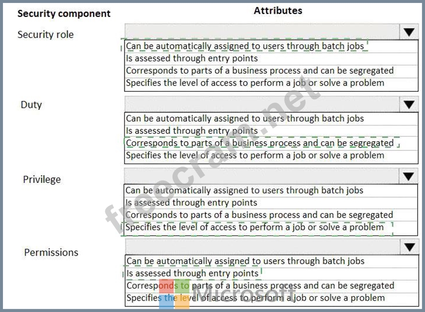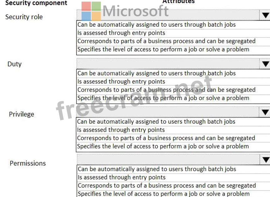 Which of the following attributes does each of the security components have? To answer, select the appropriate options in the answer area.