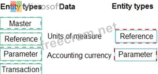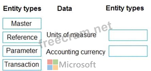 What should use? To answer, drag the appropriate entity types to the correct data. Each entity type may be used once, more than once, or not at all. You may need to drag the split bar between panes or scroll to view content.