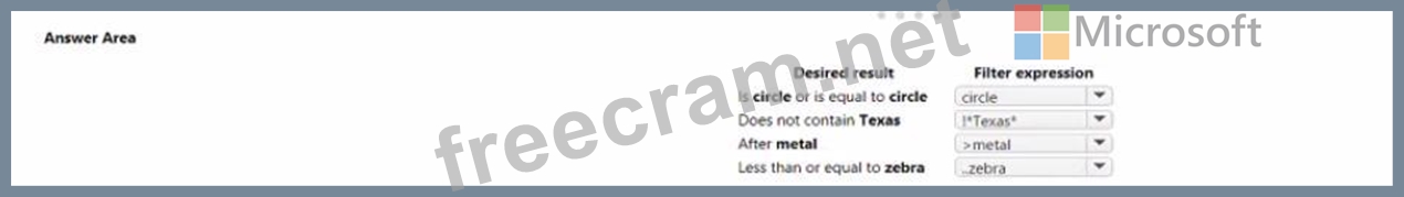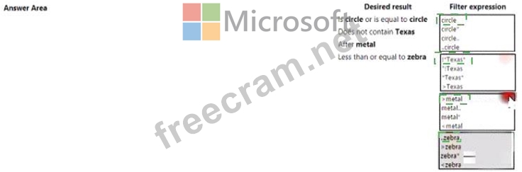 Which filter expressions should you use? To answer, select the appropriate options in the answer area.