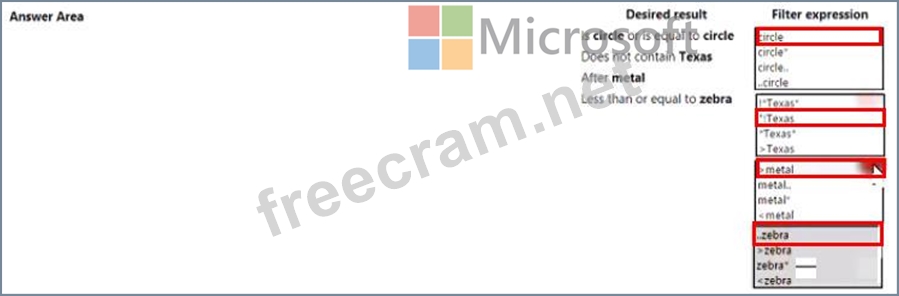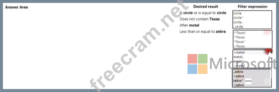 Which filter expressions should you use? To answer, select the appropriate options in the answer area.