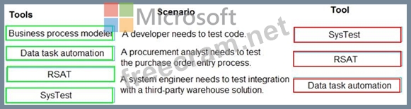 Which tools should you use? To answer, drag the appropriate tools to the correct scenarios. Each tool may be used once, more than once, or not at all. You may need to drag the split bar between panes or scroll to view content.