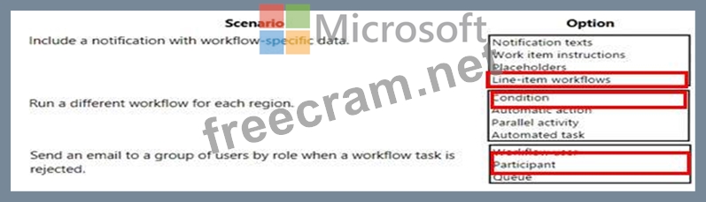 Question 7: You need to configure the workflows. What should you do? To ...