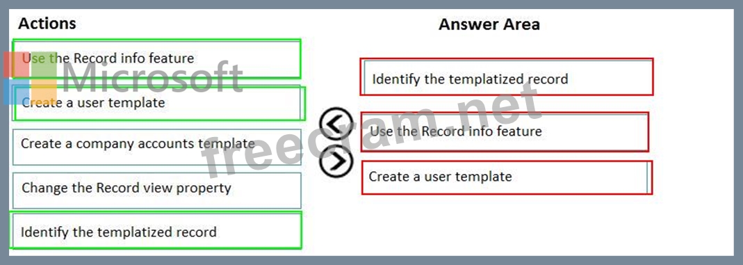 Which three actions should you perform in sequence to create the record templates? To answer, move the appropriate actions from the list of actions to the answer area and arrange them in the correct order.