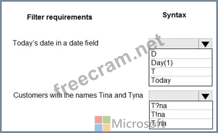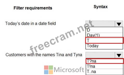 Which query filter syntax should you use? To answer, select the appropriate options in the answer area.
