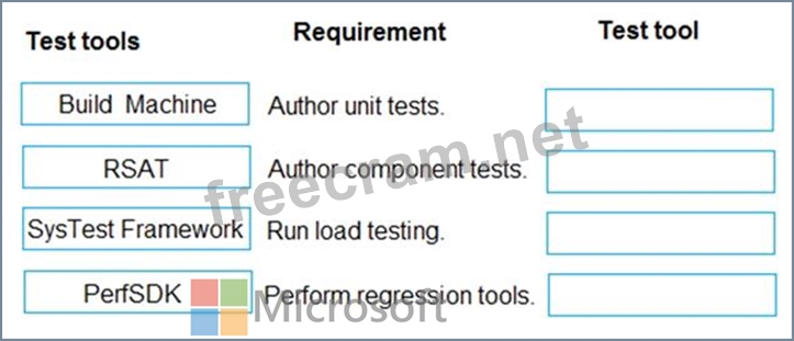 What tools should you use? To answer, drag the appropriate test tools to the correct requirements. Each test tool may be used once, more than once, or not at all. You may need to drag the split bar between panes or scroll to view content.