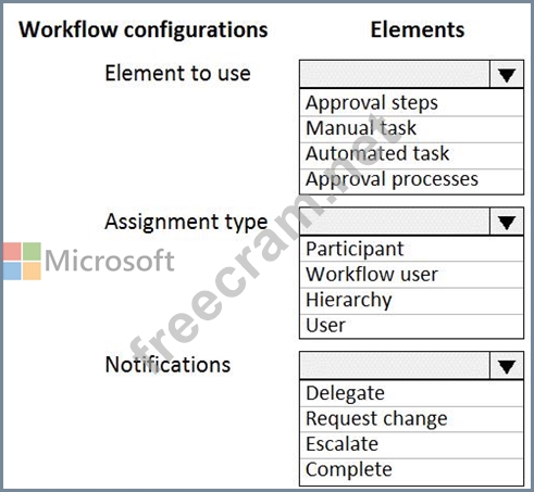 Which workflow elements should you configure? To answer, select the appropriate options in the answer area.