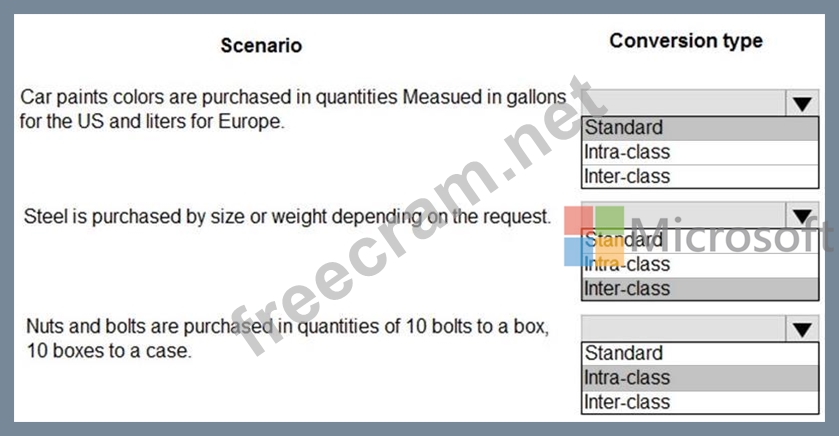 Which conversion types should you use? To answer, select the appropriate options in the answer area.