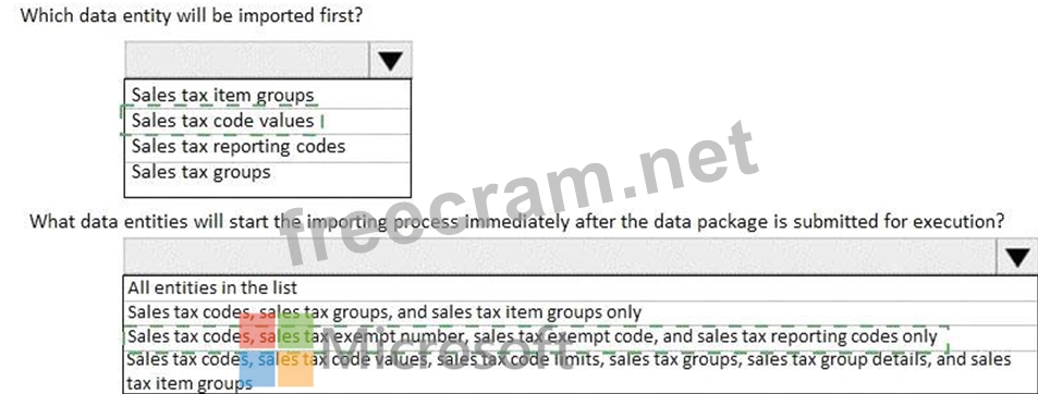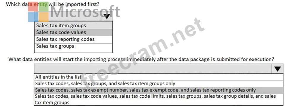 A company sets up a data package to import data by using the data management framework. You have the following data entity sequence.