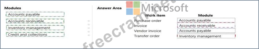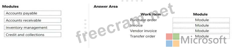 From which module do the following work items originate? To answer, drag the appropriate modules to the correct work items. Each module may be used once, more than once, or not at all. You may need to drag the split bar between panes or scroll to view content.