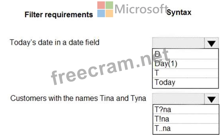 Which query filter syntax should you use? To answer, select the appropriate options in the answer area.