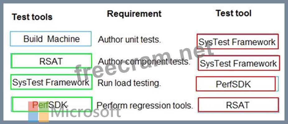 What tools should you use? To answer, drag the appropriate test tools to the correct requirements. Each test tool may be used once, more than once, or not at all. You may need to drag the split bar between panes or scroll to view content.