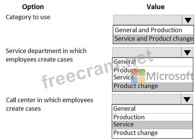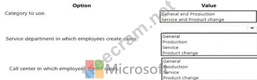Which Case management settings should you choose for each category or categories? To answer, select the appropriate options in the answer area.