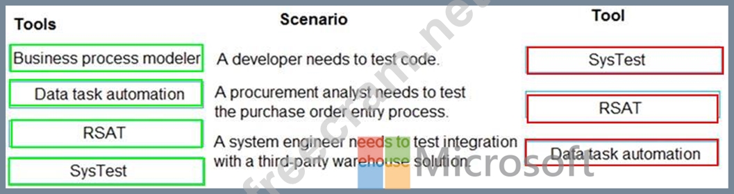 Which tools should you use? To answer, drag the appropriate tools to the correct scenarios. Each tool may be used once, more than once, or not at all. You may need to drag the split bar between panes or scroll to view content.