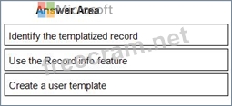 Which three actions should you perform in sequence to create the record templates? To answer, move the appropriate actions from the list of actions to the answer area and arrange them in the correct order.