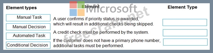 Which element type should you use? To answer, drag the appropriate element type to the correct element. Each element type may be used once, more than once, or not at all. You may need to drag the split bar between panes or scroll to view content.