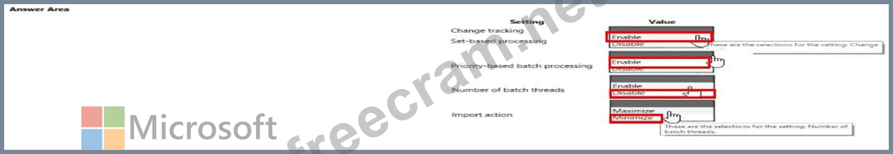 Which values should you use? To answer, select the appropriate options in the answer area.