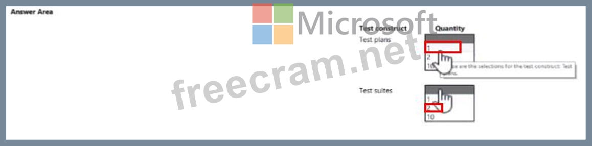 Which test construct should you configure? To answer, select the appropriate options in the answer area.