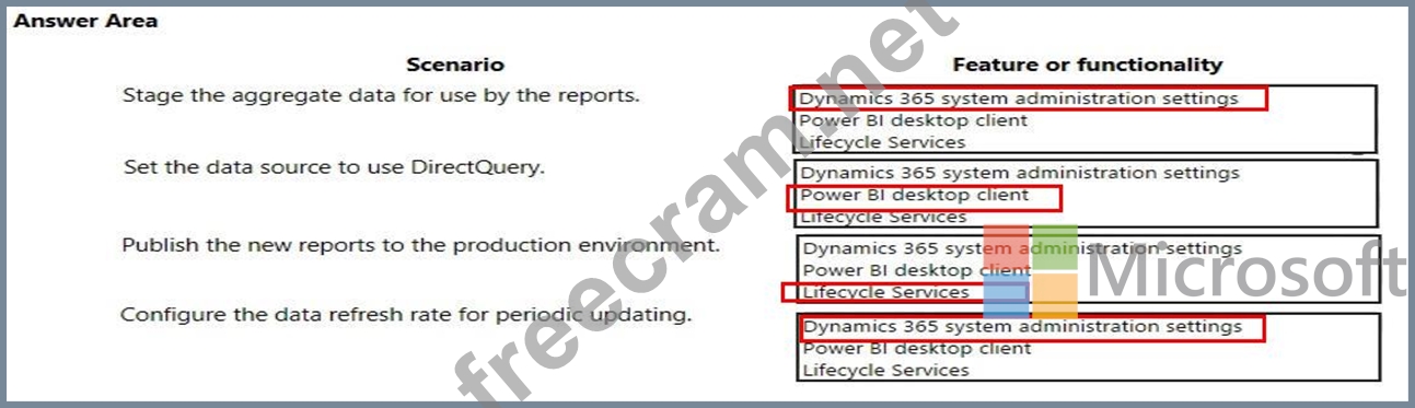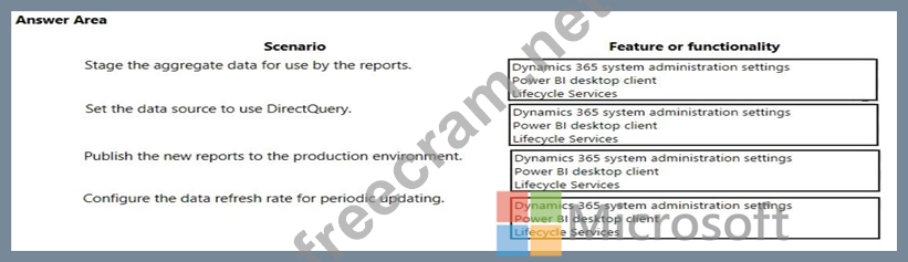 A company implements Dynamics 365 for Finance and Operations. It sets up and configures the system to support reporting requirements using Microsoft Power Bl.