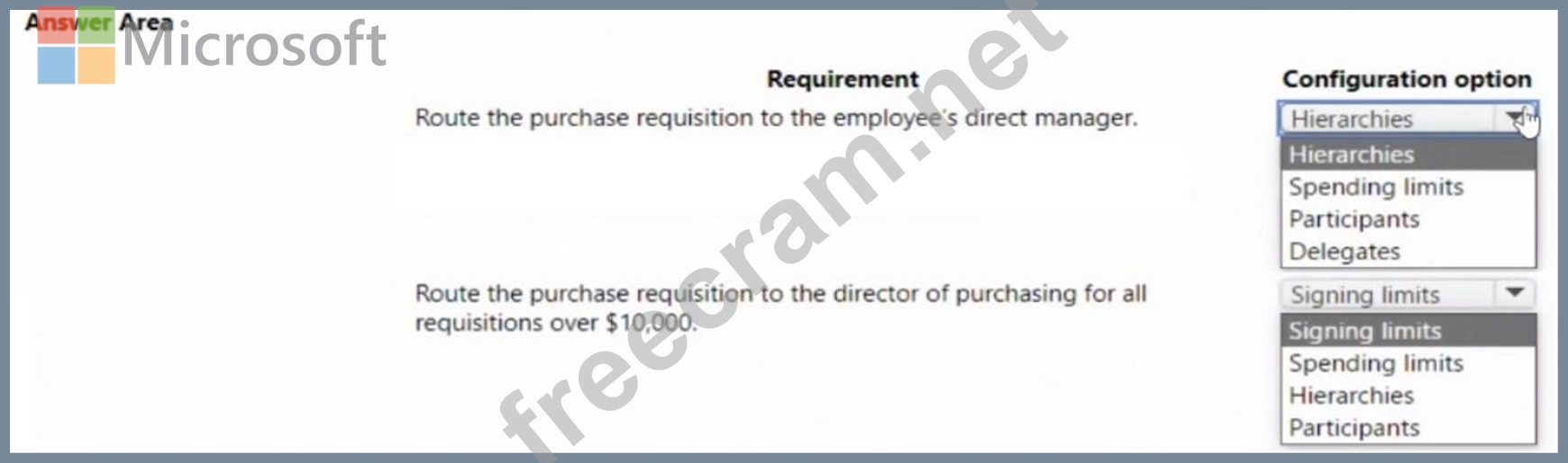 Question 163: A company uses Dynamics 365 Supply Management. You must impl...