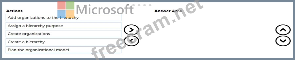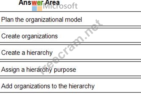 In which order should you recommend that actions be performed to create an organizational hierarchy? To answer, move all actions from the list of actions to the answer area and arrange them in the correct order.