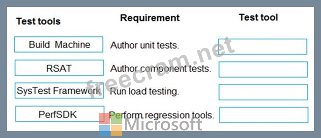 What tools should you use? To answer, drag the appropriate test tools to the correct requirements. Each test tool may be used once, more than once, or not at all. You may need to drag the split bar between panes or scroll to view content.
