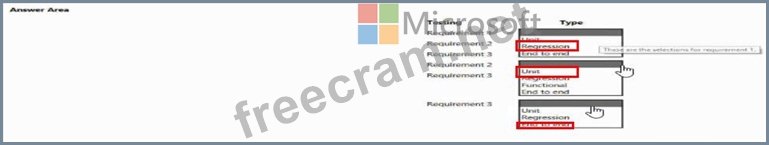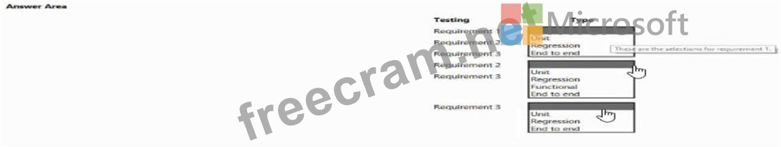 Which testing type should you use? To answer, select the appropriate options in the answer area.