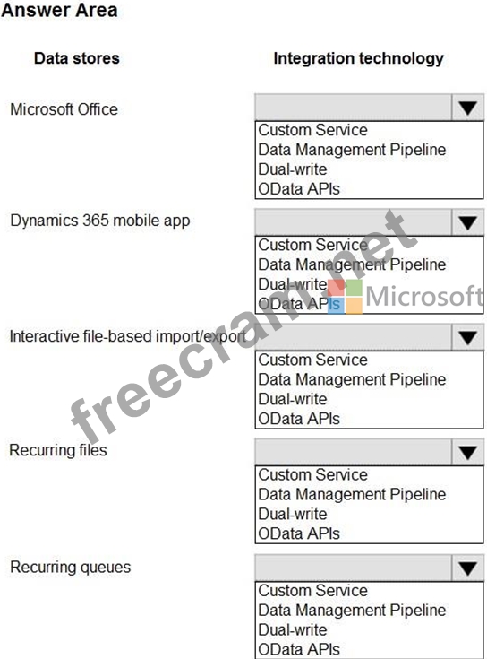 Which integration technologies should you use? To answer, select the appropriate options in the answer area.