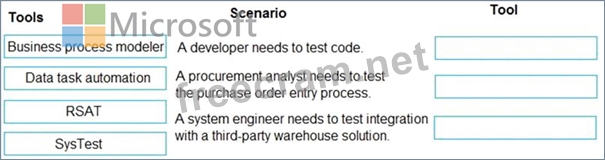Which tools should you use? To answer, drag the appropriate tools to the correct scenarios. Each tool may be used once, more than once, or not at all. You may need to drag the split bar between panes or scroll to view content.