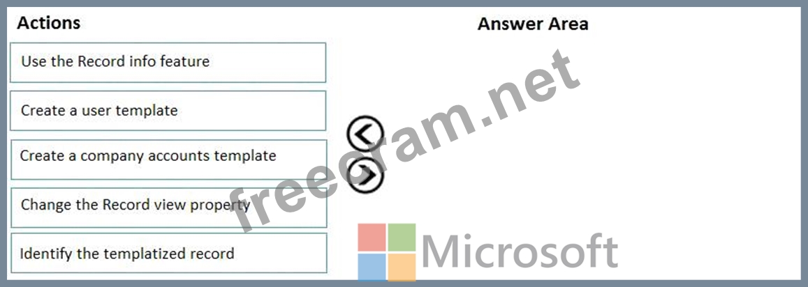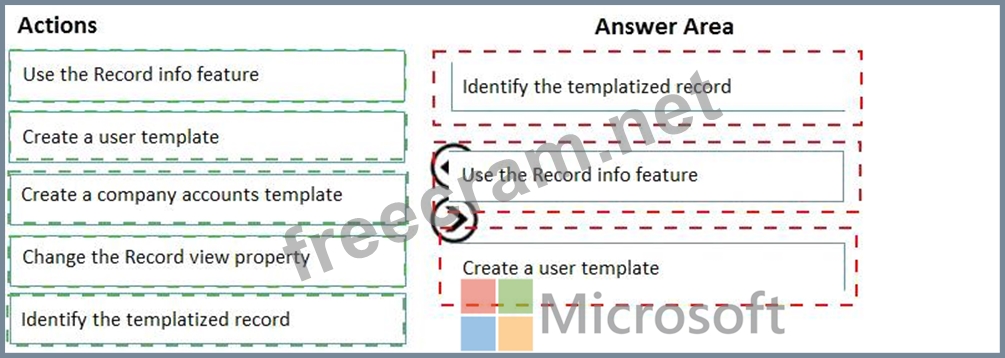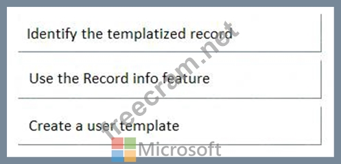 Which three actions should you perform in sequence to create the record templates? To answer, move the appropriate actions from the list of actions to the answer area and arrange them in the correct order.