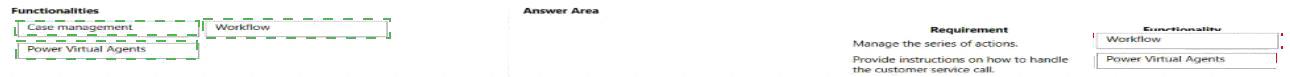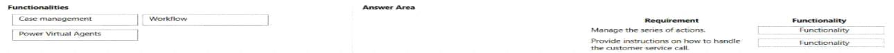 Which functionality should you use? To answer, drag the appropriate functionalities to the correct requirements. Each functionality may be used once, more than once, or not at all, You may need to drag the split bar between panes or scroll to view content.