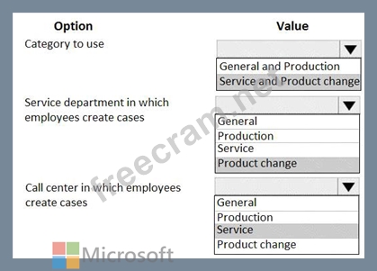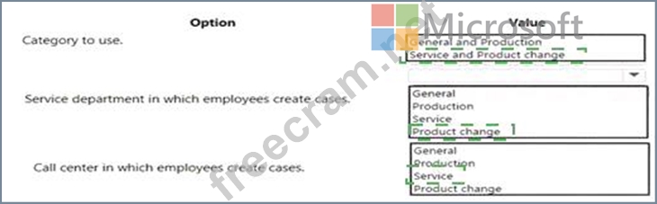 Which Case management settings should you choose for each category or categories? To answer, select the appropriate options in the answer area.
