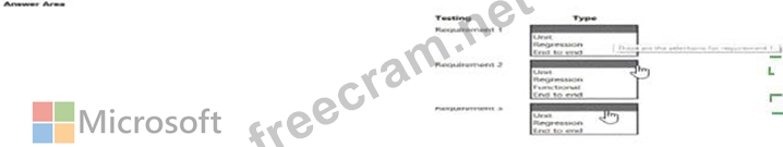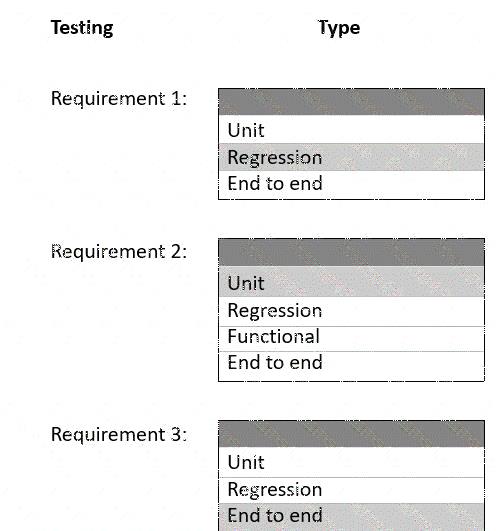 Which testing type should you use? To answer, select the appropriate options in the answer area.