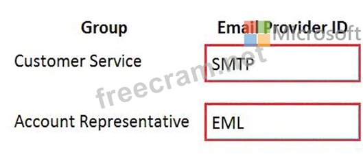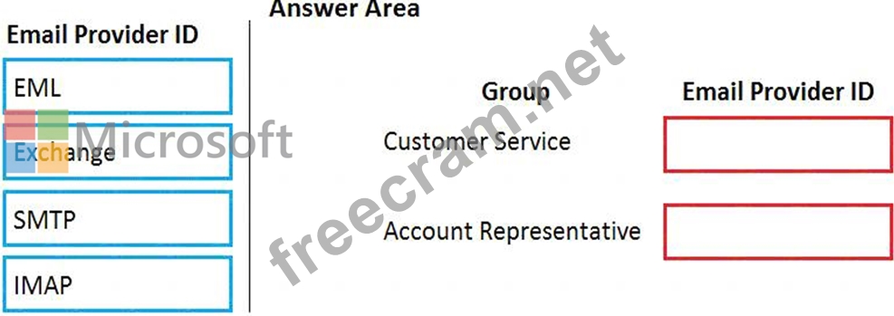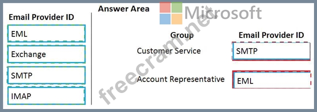 Which email providers should you enable? To answer, drag the appropriate email provider IDs to the correct groups. Each email provider ID may be used once, more than once, or not at all. You may need to drag the split bar between panes or scroll to view content.