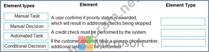 Which element type should you use? To answer, drag the appropriate element type to the correct element.